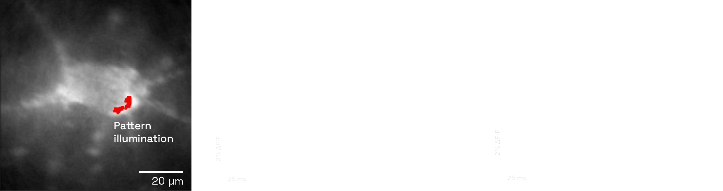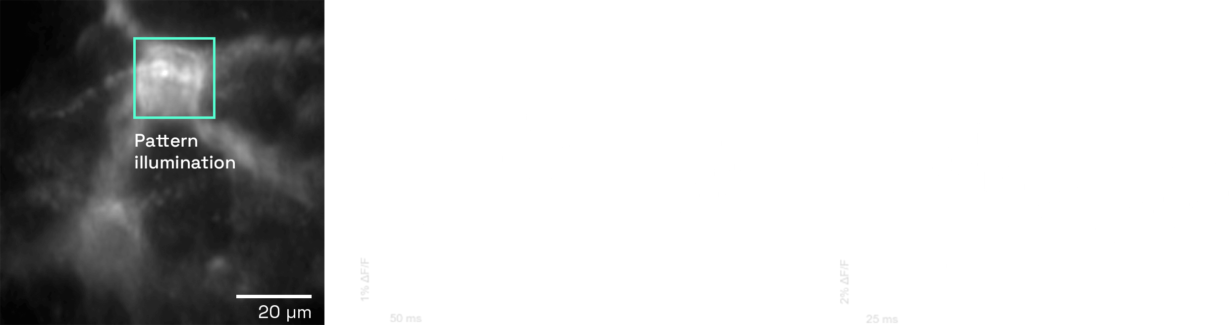 DeepEn One™ offers fast-frame-rate mode, suitable for voltage imaging, to record action potentials and subthreshold events for capturing neuronal activity in real time. By reducing spatial resolution and focusing on selected readout areas, this mode achieves the speed necessary to resolve action potentials and subthreshold events.